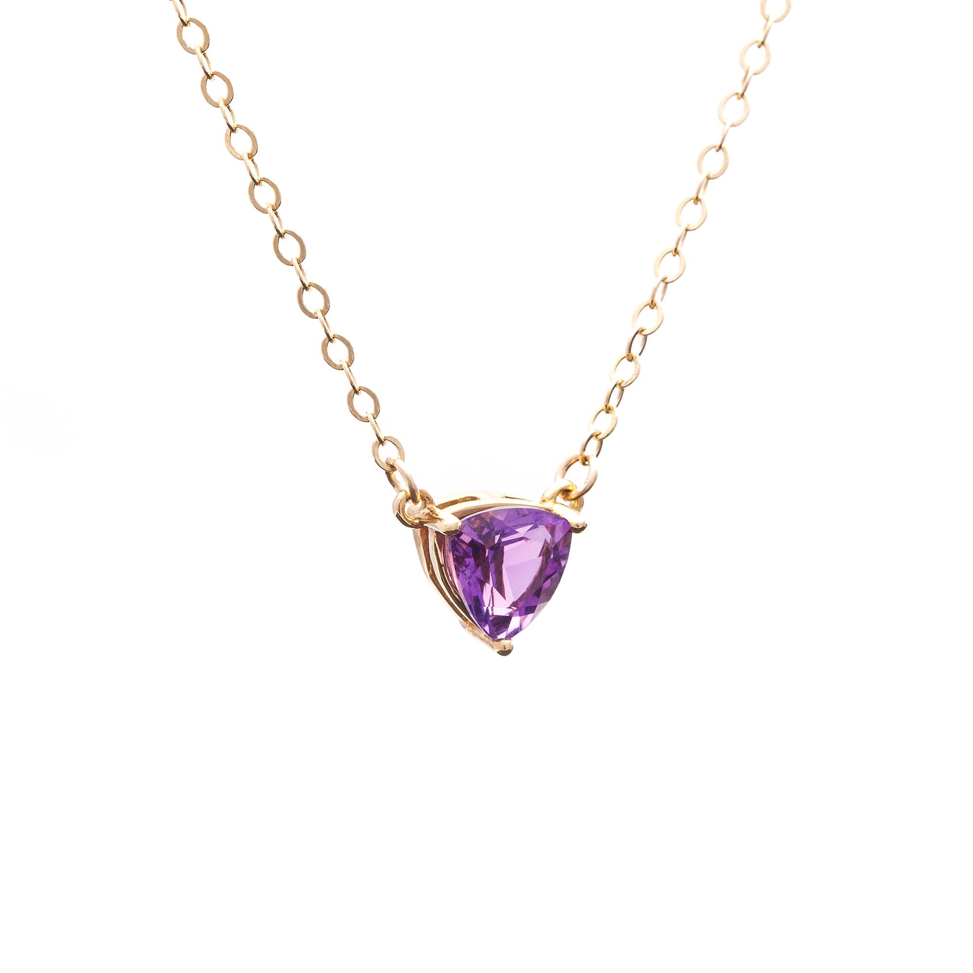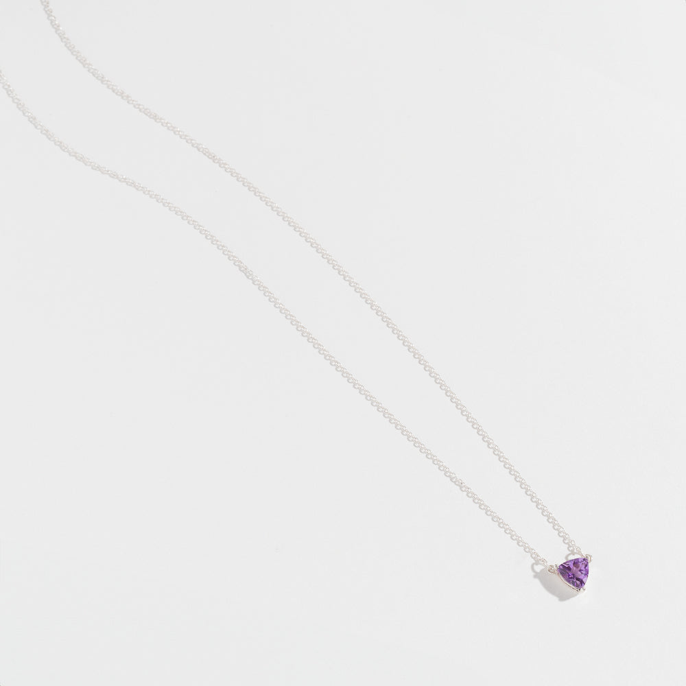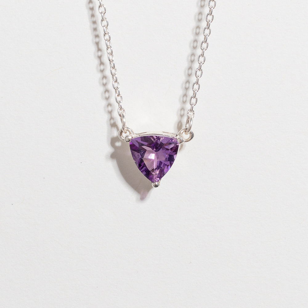 Chain measuring 18" in length. One 7mm trillion faceted Amethyst gemstone.